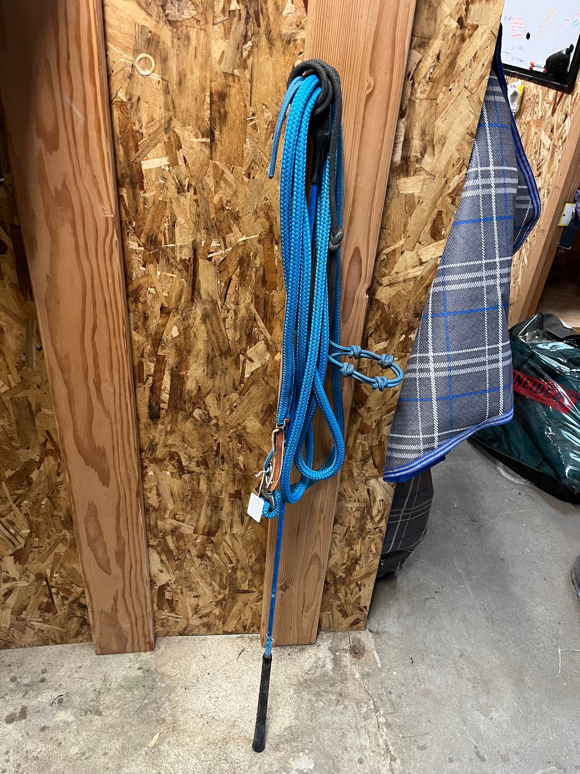 halter + lead have some dust/dirt that will easily wash off. Otherwise Halter and lead were barely used, stick + string saw more use but still in good used condition.